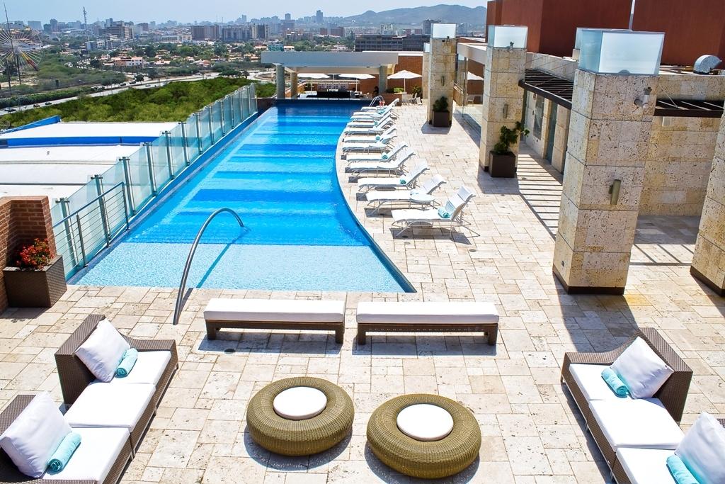ademas de contar con una piscina aérea con vista panoramica de la ciudad.