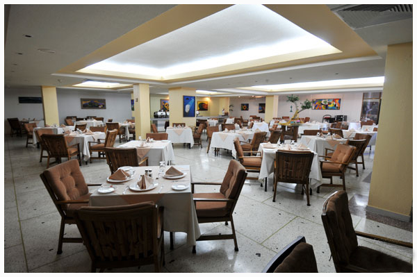 El elegante restaurante del Puerta sirve un rico desayuno bufé, así como platos locales e internacionales para el almuerzo y la cena.