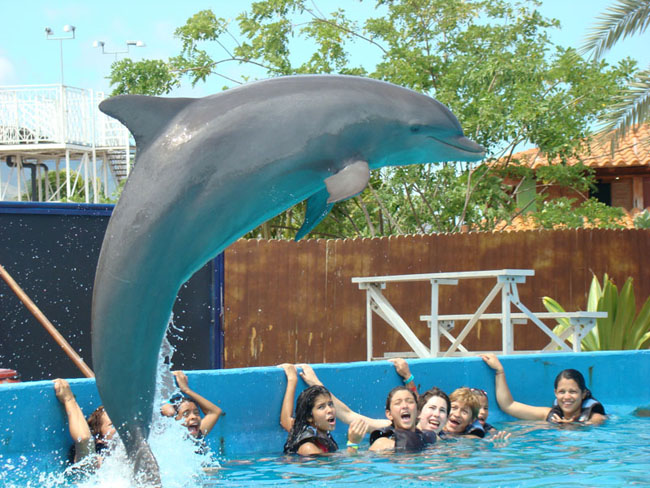 En este programa podrán interactuar con nuestros delfines mientras aprenden de una manera divertida acerca de estos bellos ejemplares. Además podrán bailar, cantar y recibir un mojado besito de nuestros delfines. Este programa se realiza en la piscina central que tiene las siguientes medidas: 7 mts. de profundidad y 27 mts de diámetro. Grupo máximo de 12 visitantes por delfÃn. La actividad tiene una duración de 20 a 25 minutos. Aproximadamente.